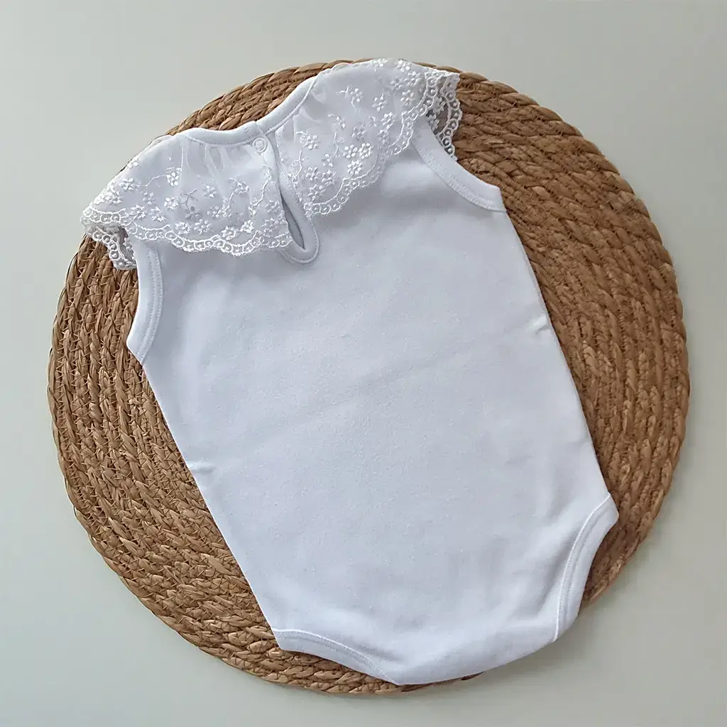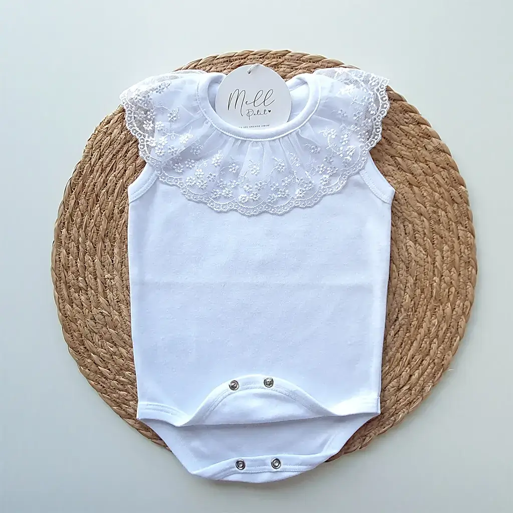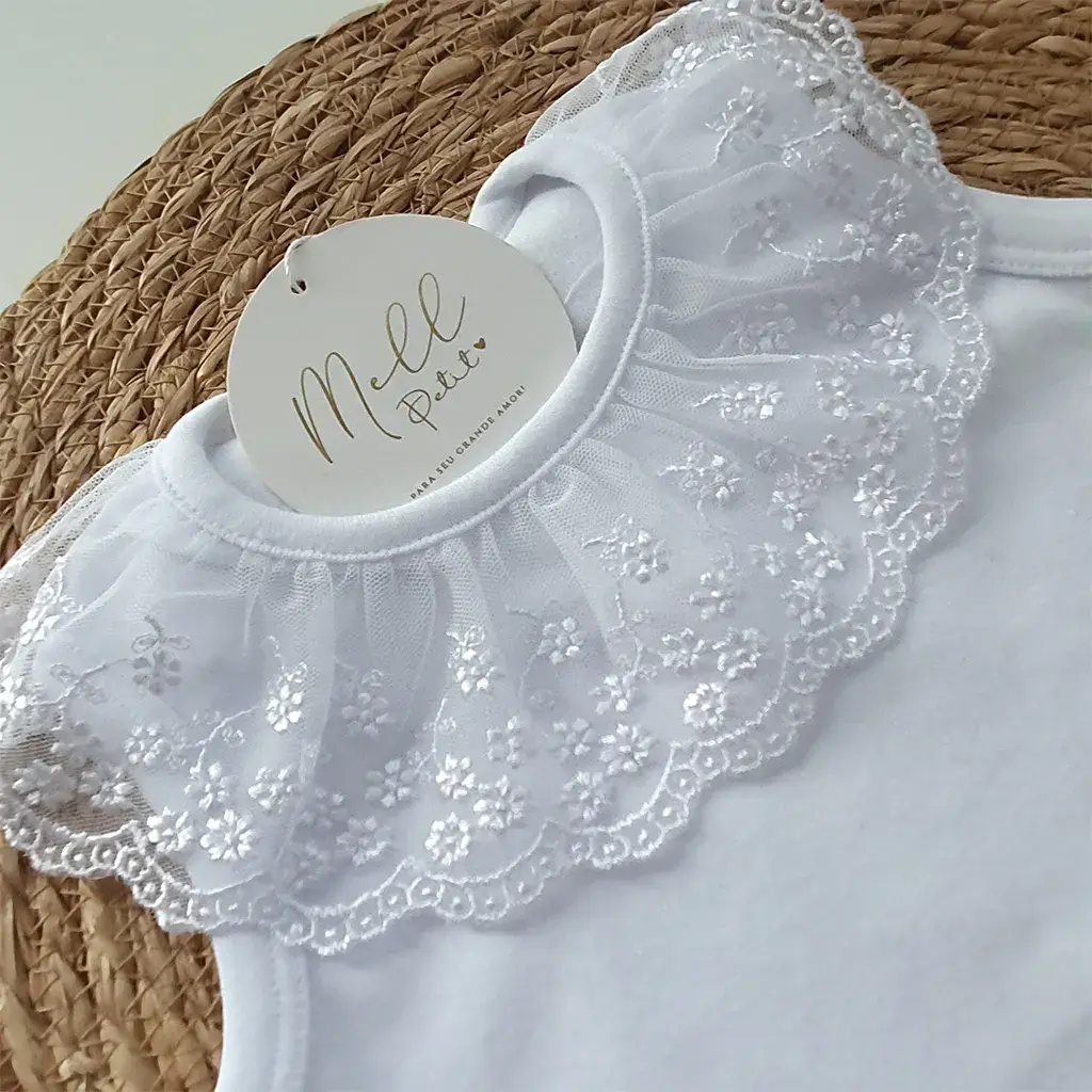 Pontos a destacar: a golinha em renda destaca a delicadeza do acabamento. Suas aberturas por botões de pressão oferecem conforto para a bebê no momento da troca de fralda. É perfeita e uma linda combinação para compor diversos looks.